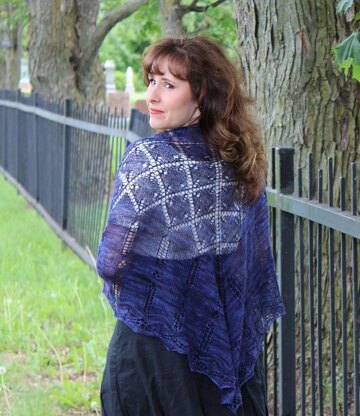 This triangular shawl was inspired by gates in the Père Lachaise cemetery in Paris. It is both a charted and written lace design, with lace knitting on every other row. It can be knit in any weight of yarn.