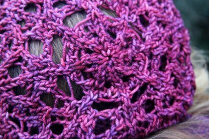 Our first European adventure from our new home in the UK was to Gay Paree.. Paris is a fantastic place in any season, but that July it was hot and green and full of tourists. Since we were visiting with two small kids, we managed to get to some of the typical sightseeing spots (in between trips to the playground). The stitch pattern in this hat reminds me of the incredible metalwork of the Eiffel Tower when viewed from below: arcs of metal forming an intricate and delicate-looking lace network that hold up a towering needle thrusting into the sky. This hat uses true lace knitting, with patterning on every row. Stitch pattern is presented in charted form only. Sample shown is worked in MadeleinTosh Vintage.