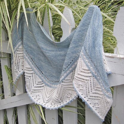 Total yarn required (a generous estimate): Color A (body of shawl and picot bind-off) - approx. 440 yds/402 m Color B (stripe and lace edging) - approx. 300 yds/275 m