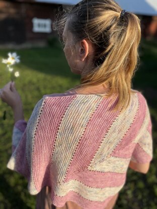 Languages: Both English and Swedish version included in the same PDF. Yarn: 4-ply (fingering) yarn in merino or merino/nylon blend, approx. 365-420m/100g. 300-350m needed for each of Yarn A and Yarn B.Needle: 3.5-3.75 mm (US5) circular needles, or needles to get gaugeGauge: 23 sts / 10 cm unblocked, 22 sts/10cm blocked. It’s not crucial to get exact gauge, but a looser gauge may result in a game of yarn chicken towards the last stripe.Notions: stitch marker, optional extra needle for the cast on, scrap yarn for cast on.Size: approx 193 cm/76” wingspan, 56 cm /22” at the widest point.