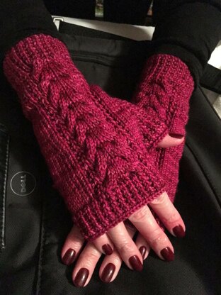 These long and elegant cabled fingerless mitts are a wonderful addition to your wardrobe and they make the perfect gift. This is a fun and engaging knit with stylish results. This pattern is a companion to The Wayfarer Hat.