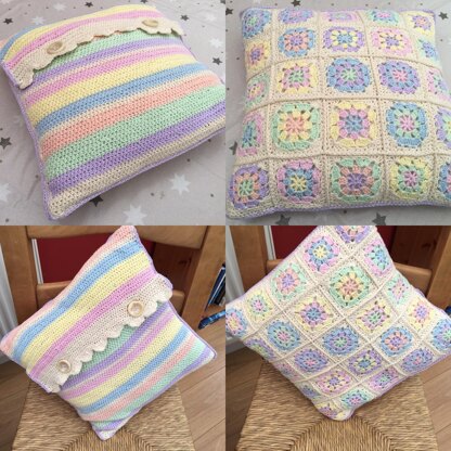 I designed this cushion cover for the chairs in my conservatory-it evokes a summery ice cream colours theme and is made from beautiful cool cotton from Three Bears Yarn.