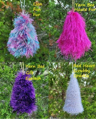 Pastels are in this year, and decorating your tree will be so easy with these pastel Christmas tree ornaments. Each ornament takes about an ounce of eyelash yarn or fun fur and a 4" paper cone or styrofoam cone to hold its shape.