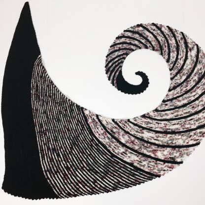 Path to Wonderland is an interesting asymmetrical shawl with many eye-catching color elements. It is worked from corner to edge using increases as well as bind-off stitches in order to create stripes on a bias.