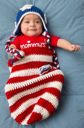 Patriotic Baby Cocoon & Hat Crochet in Red Heart Soft Solids - LW4155