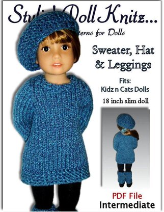 Pattern fits Kidz n Cats Dolls. Sweater, Hat, and Leggings, PDF, 451 (Knit)