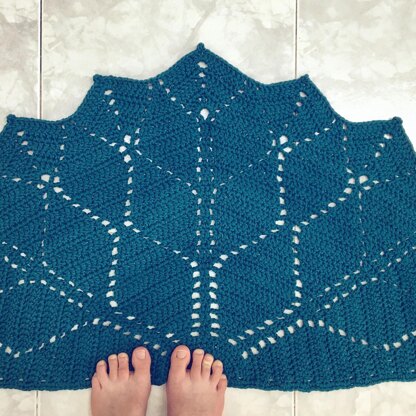 This half circle crochet rug is a half-circle version of my Diamonds Doily pattern. It’s a quick and fun weekend project. This crocheted rug will be perfect on the side of your bed, home entrance, or on your bathroom floor!