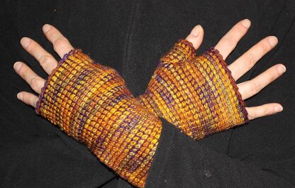 Tunisian crochet in the round is a natural for fingerless mitts. Worked in two colors, one tonal and one variegated, an effect of tiny colorful pavers laid in even rows is created. A perfect project for using up leftover sock yarn! Pair these mitts with the Paving Cowl pattern for a great set. Pattern includes charts to guide your hook.