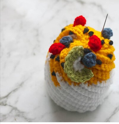This pavlova is worked flat in rows and joined. Passion fruit seeds are embroidered French knots - follow this link to sublime stitches for a tutorial Pattern allows for personalization – make as many berries and seeds as you like!