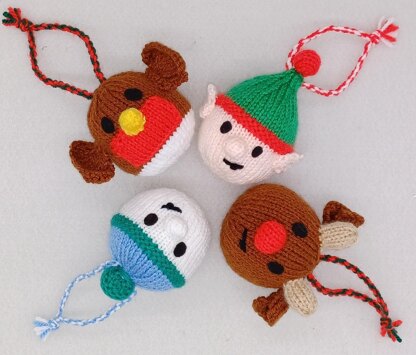 DK Knitted Christmas Bauble Tree Ornaments 7cm (not including hats etc) - Set of Four Christmas Knitting Patterns. These are a lovely size to make as a quick knit. Perfect for a beginner, simple easy to follow pattern.
