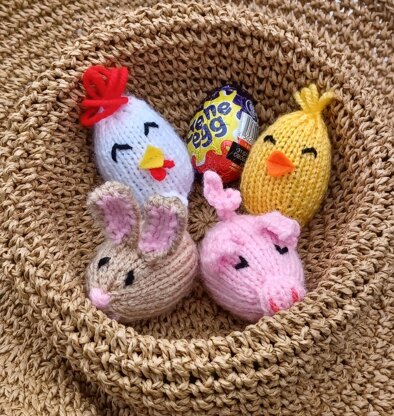 PDF KNITTING PATTERN Farm Yard Creme Egg Covers EASY Set Of 4 Pig Chick Bunny EASTER Oreo Egg