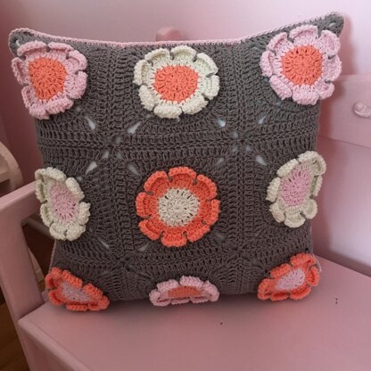 My peach flower granny square pillow is the first of my book cover inspired pillows. It is inspired by the cover of Sarah Addison Allen's book, The Peach Keeper. The front side is composed of nine 3D flower granny squares, and the back side is a traditional granny square. The pillow is joined along three sides, and the bottom is held together with five buttons. This allows the pillow to be taken on and off of the insert. I used MillaMia yarn, but any sport weight yarn would work! You will need two balls of the color of the front side of the pillow, two balls of the color of the back side, and one ball of each of the colors of the flowers. You will also need a 14 by 14 inch pillow insert, and five buttons. There are a lot of step by step pictures included throughout the pattern!