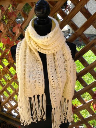 This is a pattern of intermediate difficulty and includes instructions for a one-size-fits-all tassel scarf. The finished dimensions are approximately 10 inches in width and 6 ft in length. When designing this pattern I used approximately 340 g of Caron Simply Soft yarn. Included in the pattern is an appendix with pictorial guides for some parts of the pattern which I believe may provide a challenge for some crafters, particularly those on the beginner end of the spectrum. Instructions are available in English only and include the use of standard US crochet shorthand.