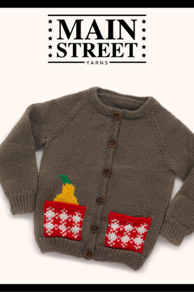 Adorable! This darling cardigan has a little intarsia pear in one of the gorgeous little Fair Isle pockets! So much fun to knit, and such a favorite to wear, this Main Street Yarns free pattern is full of charm and character. In sizes 2-3 up to 8-9, knit on 5mm needles, this fruity treat will knit up fast, perfect for picnics and fun in the park.