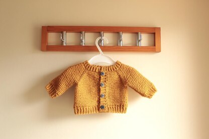 Classic little baby cardigan worked in Tunisian crochet purl stitch. It is available in various sizes 0-3 months, 3-6 months, 6-12 months, 12-18 months and 18-24 months.