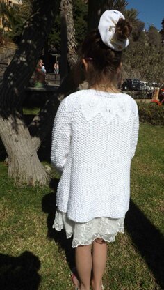 The pattern is written for a knitter with medium skills, a knitter who is able to read charts and knows how to make increases and decreases and button holes.