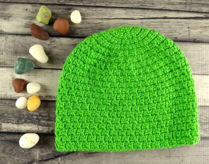 This fun hat features a textured stitch combo of double crochet and linked double crochet. I think it looks a little bit like small pebbles, hence the name! The pattern for the adult large size is available for free on my website [here][1], and the PDF is available for purchase. The PDF includes sizes toddler (17"), child (19"), small adult (21") and large adult (23"). Baby sizes are not included. I've also filmed a few short YouTube video tutorials to accompany the pattern. These show linked double crochet, the textured dc/ldc combo stitch (pebble stitch), and the joining method I used in this particular hat to try to minimize the appearance of the seam line. These videos are all also available for free on my YouTube Channel.