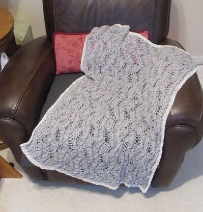 Reminiscent of exposed pebbles and rivulets of a low tide, this beautiful blanket can be knitted as a lap throw or baby blanket. A thin, simple border - much like the binding of a quilt – frames the heirloom cable and lace design. The “Notes” section lists several traditional & non-traditional colorways for baby gifts. Both written and charted instructions are included.