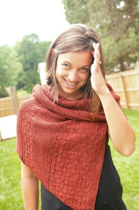 This asymmetrical sideways triangle shawl’s name comes from its shape. Pembetatu is the Swahili word for triangle. It features a textured oval motif cut into garter stitch. The juxtaposition of motifs and texture is one of the things I love about Swahili woodwork.