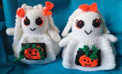 You know how ghosts are known to moan and groan their way through the afterlife? Well, we discovered the reason. And that reason is that they are stuck wearing sheets without pockets! With the help of Penelope, a fashion icon of eternity, the no pocket problem has been solved! Penelope has an adorable pumpkin pocket on her sheet - so she can gather all things important to apparitions. So grab some worsted weight yarn in white, orange, black and brown, a 3mm crochet hook, and the usual crochet tools (scissors, tapestry needle and fiber fill) to create a happy little poltergeist with a pocket! Stitching for the adventurist beginner.