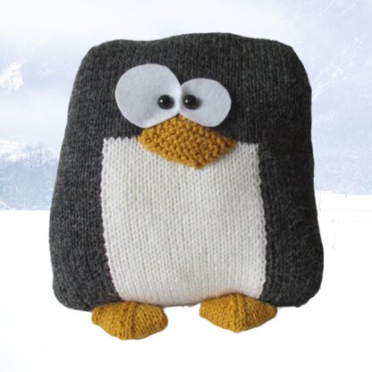 Cheer up your sofa with a knitted Penguin Cushion to cuddle. Designed by Amanda Berry @fluffandfuzz, the penguin is knitted in aran weight alpaca/wool blend yarns, and worked flat on single pointed needles (not in the round). This pattern incorporates intarsia colour-work to knit the tummy panel. For confident beginners and above, other techniques used include casting on and off, knits, purls, increases and decreases, and seaming to finish.