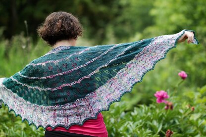 The shawl is worked from the top-down beginning with a circular cast-on. Rows of increases are worked at intervals to create the half-circle shape.