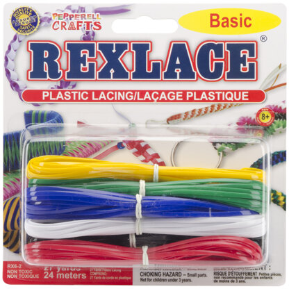 PEPPERELL-Rexlace Plastic Lacing: Neon. Rexlace is an extruded flat PVC plastic cord made for craft and hobby applications. Make key fobs, lanyards, jewelry and other accessories. One foot of rexlace is equal to about one inch of stitches/knots. This package contains twenty-seven yards of plastic lacing. WARNING: CHOKING HARZARD-Small parts. Not for children under 3 years. Imported.