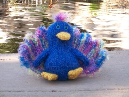 Percy the peacock is about 5 inches tall and 7 inches across the tail-span.