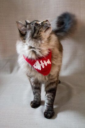 The neckerchiefs are knitted separately and then attached to a standard cat collar, this is a lot safer for the cat.