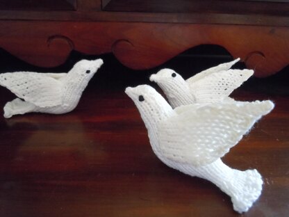 Petite Dove makes a lovely centerpiece, an ornament for your tree, or a sweet package decoration. It is worked in the round, all in one piece (except for the wings), and measures just 4 inches from beak to tail. The wings, which are stiffened with starch and blocked by ironing, have stitches which allow light to shine through.