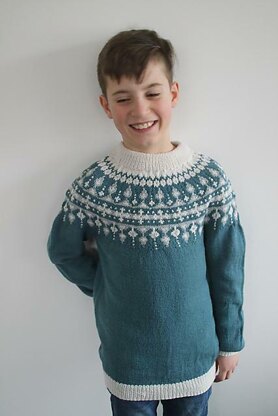 I just love a circular yoke sweater. If it has stranded work, I like it even better. Something feels very traditional and timeless with circular yoke sweaters. This sweater is knitted top down. The yoke has a flower pattern explained by a chart. The fit of the sweater is loose, but not oversized.