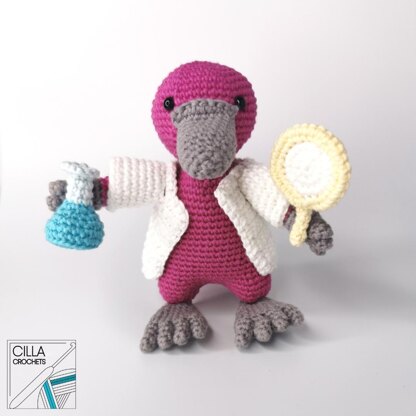 Phyllis the Platypus is part of my Aussie Amigurumi collection. She comes with three accessories, a lab coat, flask and magnifying glass to help her do her job as a scientist. Her arms can also swivel back and forth, and instructions on how to do this are included within the pattern (including lots of photo tutorials to help you along the way).