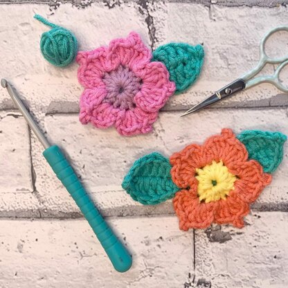 Crochet this easy flower and use for floral embellishments and appliques from crochet headbands, beanies and even to decorate cards!