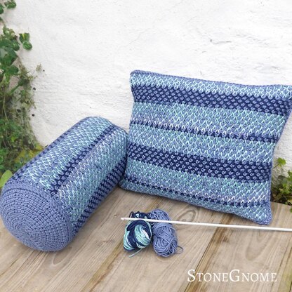 Use the pillows to support your arm, while you crochet or knit. They are also useful behind your back or behind neck while travling by car (and you are not driving). The pillows are made with the very beautiful twisted stitch pattern.