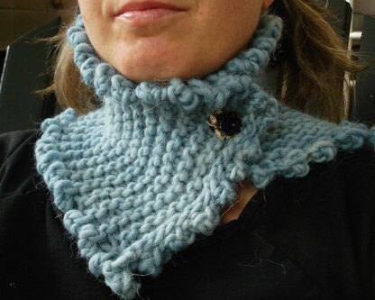 A versatile, simple cowl/collar/neck warmer. It’s secured with a vintage clip-on earring, so adjusting the style is easy. It can be worn as a high neckwarmer, a slightly rolled cowl, or a rolled-down collar. It's super easy and fast to knit, perfect for a treat for yourself or a last-minute gift.