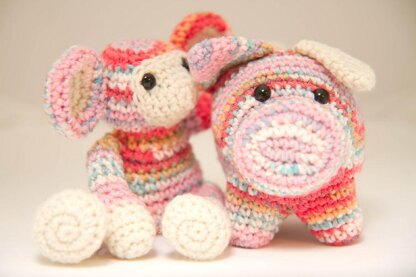 Both pig and monkey stand about 10cm high, I got them both out of one ball of the patterned yarn and a small amount of contrasting colour.