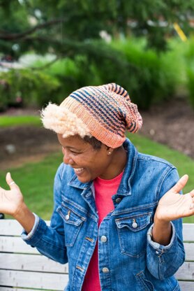 Details: Pigdale (named for the yarn colors: Pigtown and Scottdale) is a fun, striped hat with a textured panel for a little something extra. To prevent a bunch of ends to weave in later the stripes are narrow enough to carry yarns up the side of the hat. I located the textured panel at the start of the round so that any jogging of stripes would be hidden. This hat is sized for the whole family with the smallest size being suitable for a child and the largest fitting an XL adult (or big hair). All hats are the same length giving it a stocking cap look when knit in the kids size. Because so little yarn is used, just ~1.5 to ~3 oz of each color, this would be a great stash buster project.