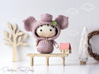 Pink Piggy Tanoshi Doll - pdf knitting pattern.