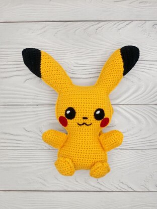 This pattern has 46 pages and with a great amount of step-by-step photos, a list of necessary materials, contains detailed description of crochet rag doll Toy Pokemon Pikachu. Materials needed to create a toy 11.0 inch (28 cm) tall (with ears). ● Main color yarn – Yellow - 216, Black - 60, Alize Lana gold Classic, 100g +/- 240 m (3.5 oz/-262 yard) ● Yarn for the cheeks - red (a little) ● Crochet hooks: 3.75 mm, (or any other in accordance with the yarn you use) ● Soft stuffing (white felt, Fiberfill for stuffing, etc) ● Tapestry and sewing needles, scissors, tweezers.