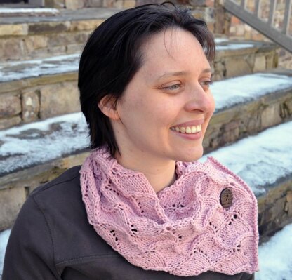 Snuggle your loved one in Pillows of Comfort! It works great for keeping the winter chill off of your chest, especially for those who may be bed-ridden. Designed for the one I loved and recently lost, this pattern includes written directions and charts for both the cowl and the scarf! The cowl for this pattern is knit with 1 skein Estelle's Cotton Cloud on US 9 needles with US-I crochet hook for finishing around the button hole. The scarf is knit with 2 skeins Americo Originals Organic Cotton with US 6 needles.