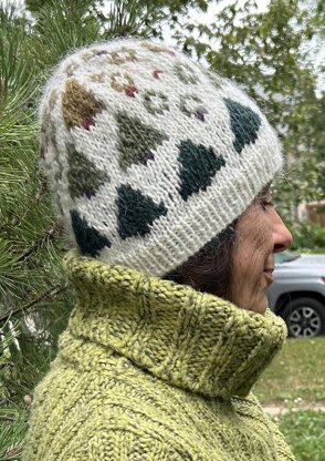 The Pine Croft Toque pattern is a fun design for knitters interested in honing their skills at stranded knitting in the round. The medium-weight 100% Icelandic wool works up easily, producing a warm, “double” layer with stranding that insulates effectively against the cold. Above all, this design is perfect for using up stash yarn! The pattern includes written instructions and a chart for each size.
