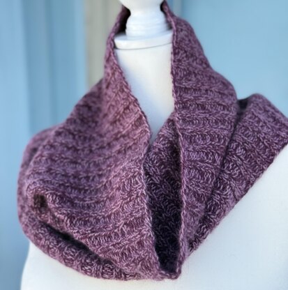 The Pine Street Split Rib Cowl features a marled texture created by holding two strands of lace-weight yarn together. Its construction begins in the round and shifts to flat knitting, forming a subtle split that reduces bulk at the back of the neck and allows for flexible styling. Wear it open in the front, folded over, or tucked neatly inside your coat. This is a beginner-friendly, quick project—perfect for gift knitting or using up luxurious yarn from your stash.