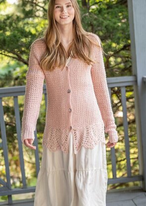 The Pineapple Cardi is a gorgeous cardigan – the perfect layering sweater. Made with laceweight yarn, it is light to wear yet fends of the chill. Wear over a tank top and jeans for a casual day shopping or a skirt and shell for a lovely professional look for work.