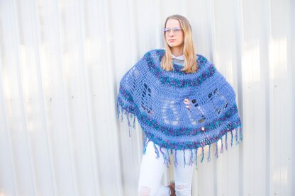 Create a daytime 'functional' poncho with rustic yarns, or use a special yarn like Adriafil Riflessi to turn this into eye catching evening-wear.  Whichever you choose (or both), you will know you're wearing something beautiful and unique. The fringe (and it's length) is your choice, but it does add an element of drama and flair to your poncho.