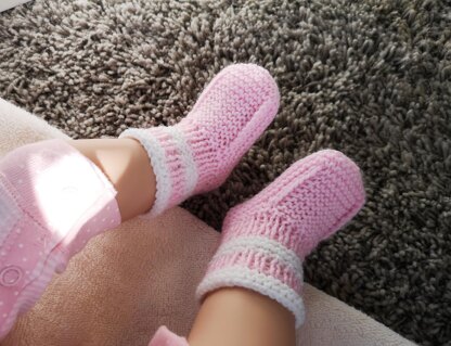 Gorgeous booties for babies. These ankle high baby booties are ideal for newborns. Booties anatomically correctly sit on the feet of the baby. The elastic of the booties is quite high and soft, and the heel of booties match with the heel of the newborn.