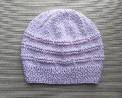 Pink Hat with Garter Stripes and Slipped Stitches for a Lady