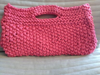 Pink Lady is a bag for all occasions - it is knitted in recycled t-shirt fabric,and the Moss Stitch gives it an interesting texture.