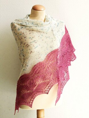 Patterning in the edging of the shawl is on both RS and WS rows. Stitches used include knit, purl, skp, k2tog and yo. This pattern is suitable for the intermediate to advanced knitter.