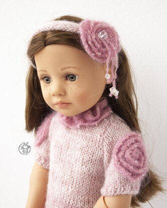 This PDF pattern for a knitted outfit includes a description of knitting dress, headband.