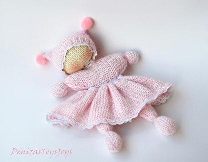 Pink Waldorf knitted girl doll for small babies.